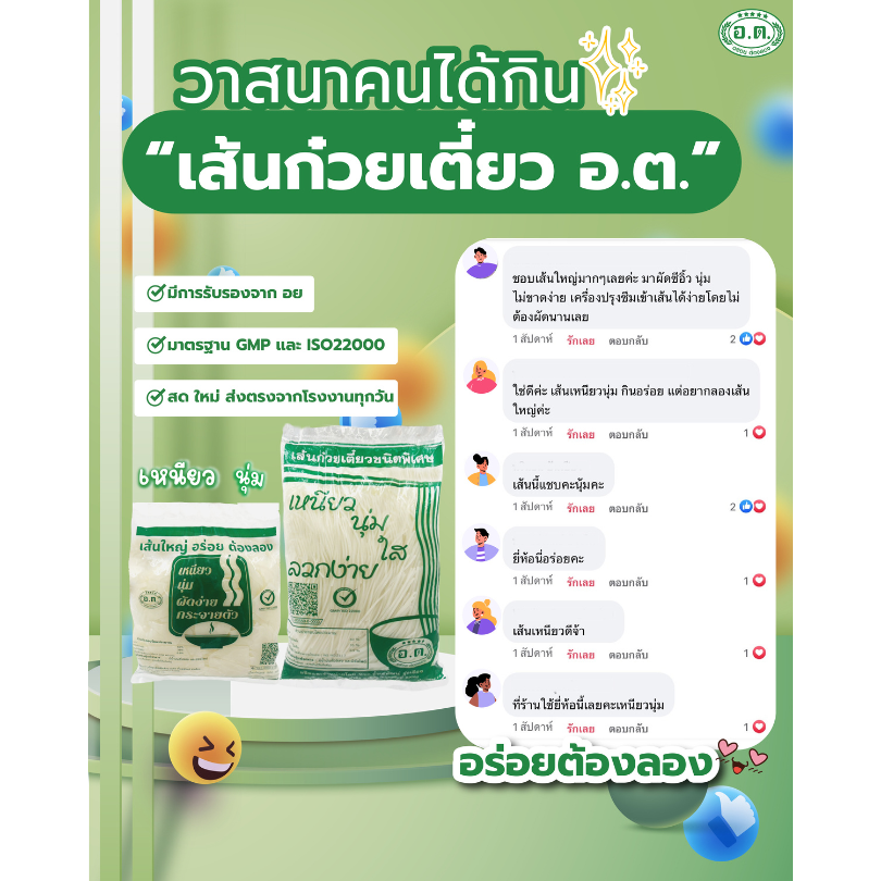 เส้นก๋วยเตี๋ยวตรา อ.ต. สูตรเหนียว นุ่ม เส้นใส ลวกง่าย